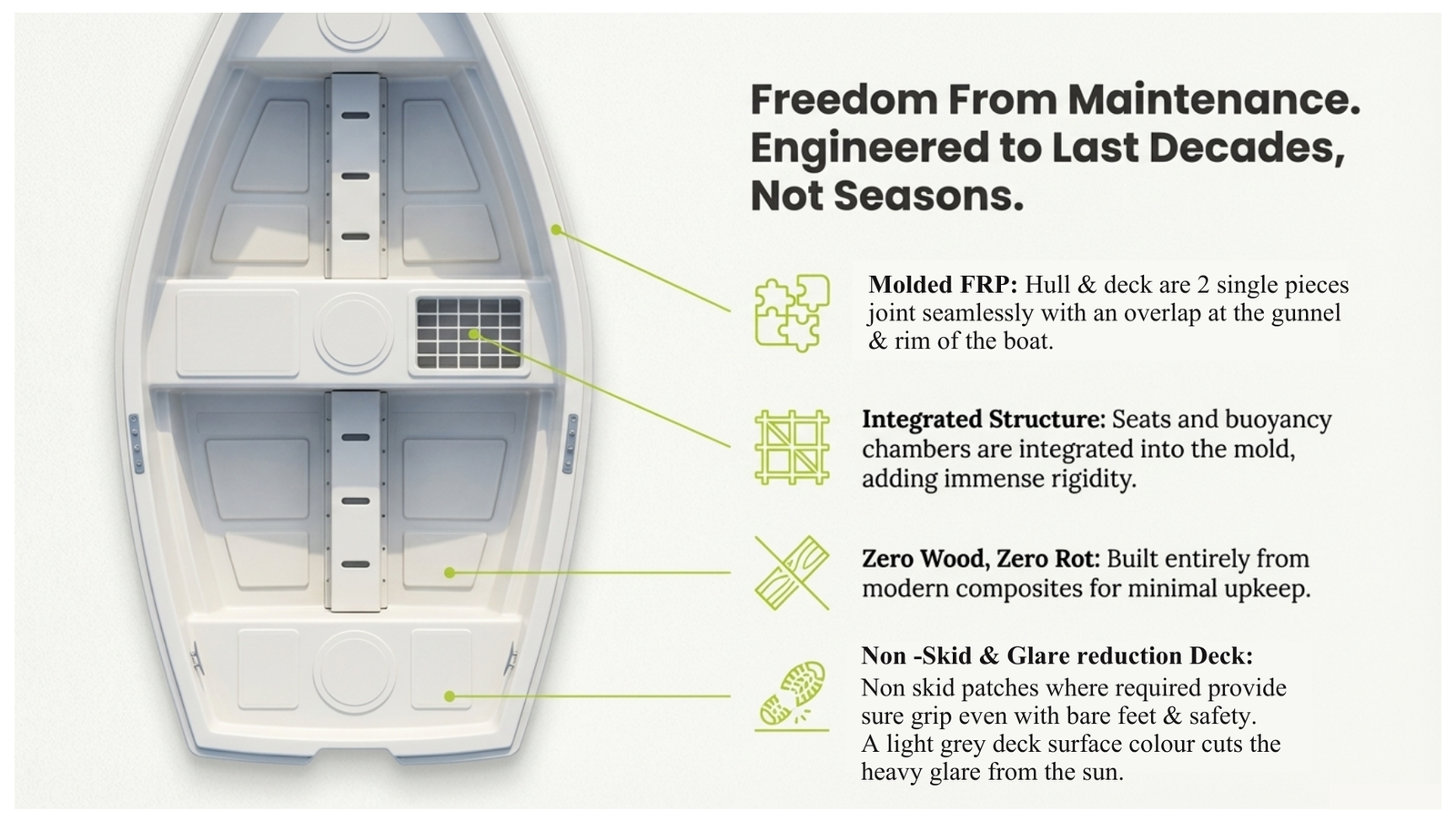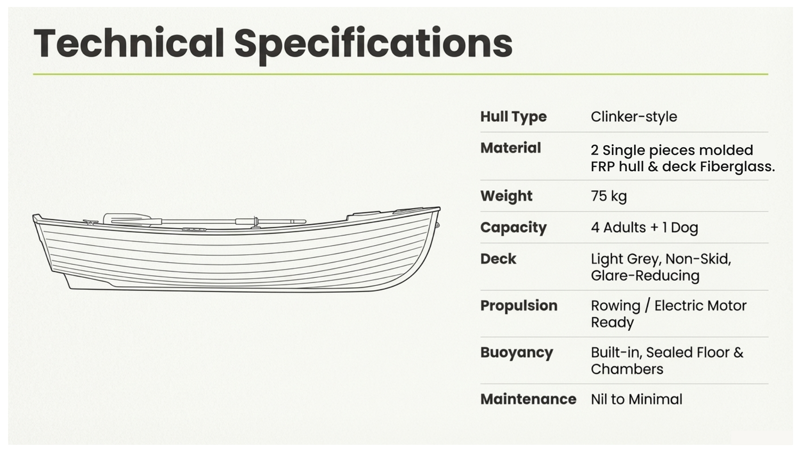 • Durable Clinker Hull Design: Ensures perfect buoyancy, stability, and durability in all water conditions.