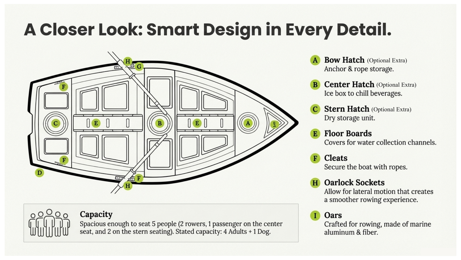 Experience unmatched convenience and performance on the water with KAII Row Boat’s thoughtfully engineered features and durable accessories — built to keep your ride smooth, safe, and stress-free.